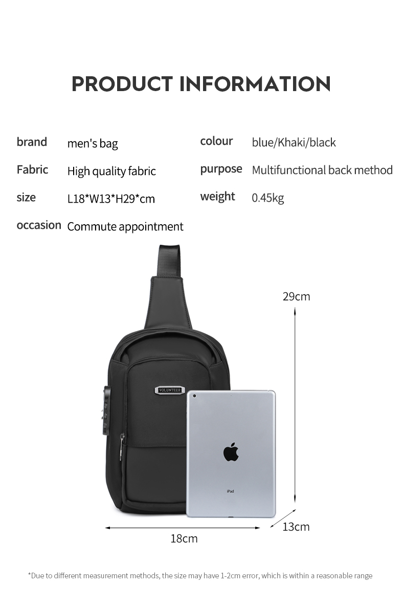 | Variations | Black, Khaki, Blue |